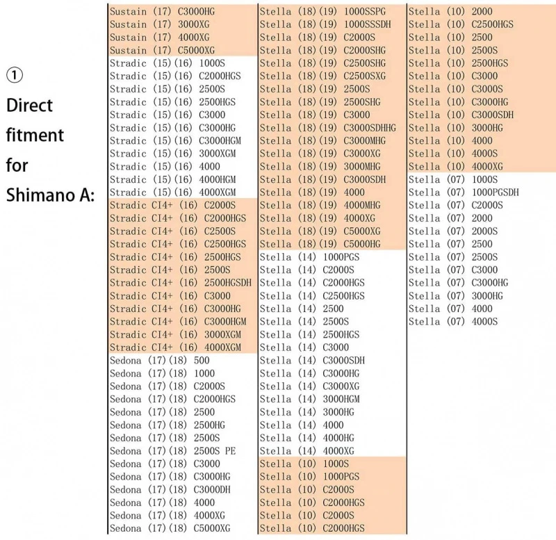 Directe pasvorm voor Shimano Spinning reel Handle A: (16) Stradic CI4+ 1000 – 4000?(06) Sephia 2500, (09) Sephia 3000, (08) (10) (12) (17) Sephia CI4+ 3000, (07) Sephia BB 2500,(10) (11) (13) (18) Sephia BB 3000